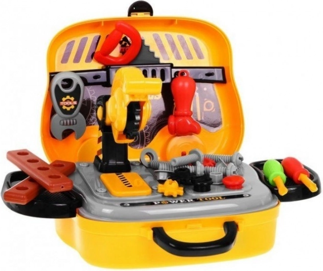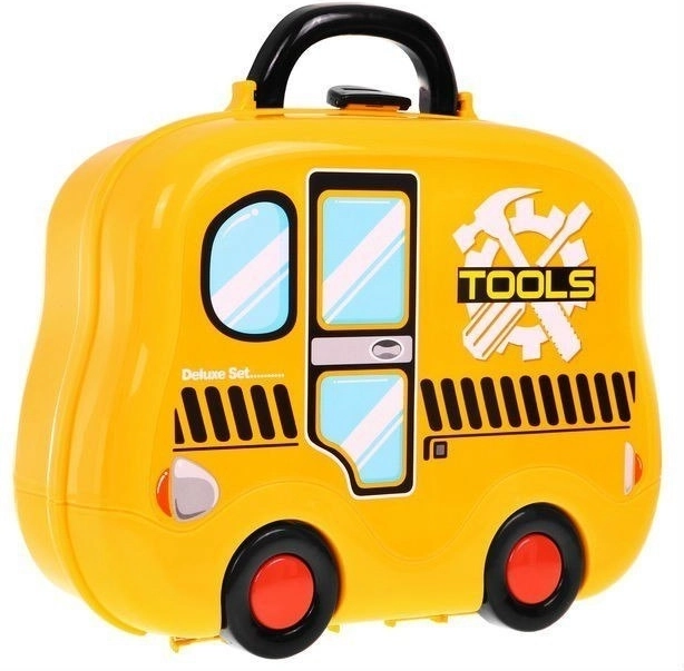 Praktisch koffertje dat het kinderen makkelijk maakt om de gereedschapsset op te bergen en te verplaatsen. Licht en eenvoudig mee te nemen, met een schoolbus-design.