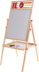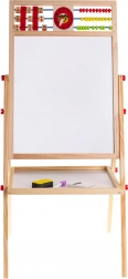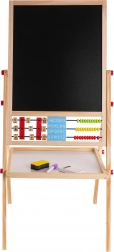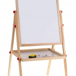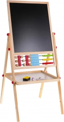 Dit stabiele houten bord combineert creatief tekenen met slim leren. De witte zijde is magnetisch voor schrijven met een uitwisbare stift en werken met magneetjes, de zwarte zijde is geschikt voor klassiek tekenen met krijt. Dankzij de verstelbare hoogte past het zich eenvoudig aan kinderen van verschillende leeftijden aan en groeit het met hen mee.