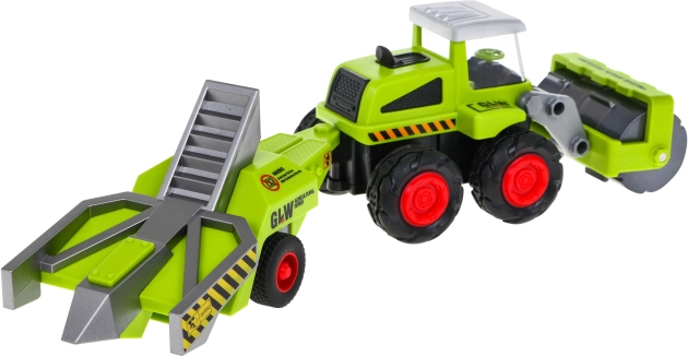 Hefbare en zijwaarts draaibare walsen maken realistische voorbereiding van het “land” mogelijk, terwijl de afkoppelbare aanhanger het gemakkelijk maakt om de “oogst” te vervoeren. Rubberen banden houden koers en de achterasaandrijving zorgt voor een soepele beweging van de hele set.
