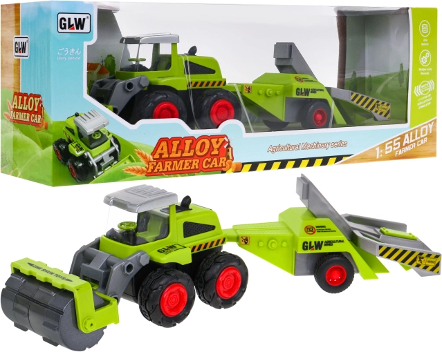 Realistische boerderijspeelset voor kleine boeren: tractor op schaal 1:55 met bodemwals en boomgaardaanhanger. Biedt een metalen uitvoering, rubberen banden, achterasaandrijving en hefbare en draaibare walsen voor nog leuker speelplezier. Ideaal voor kinderen vanaf 3 jaar.