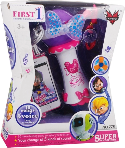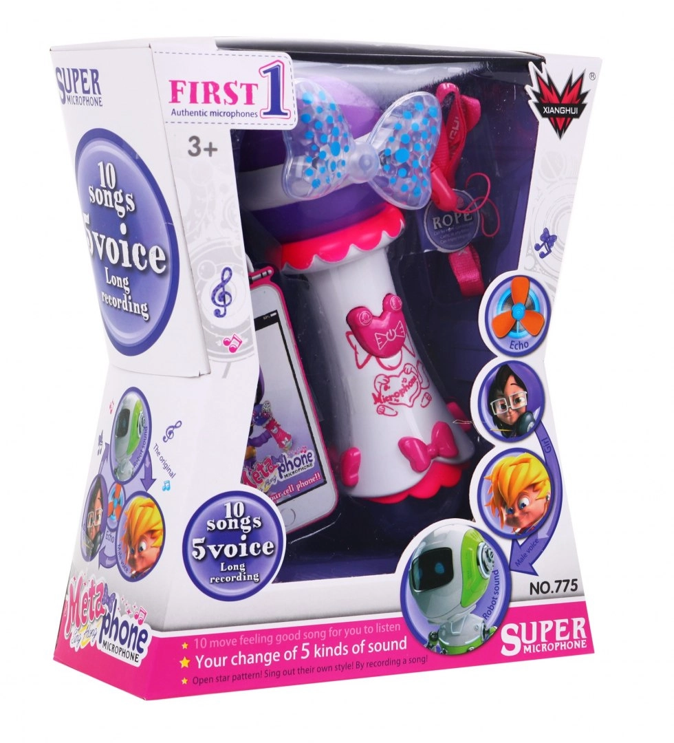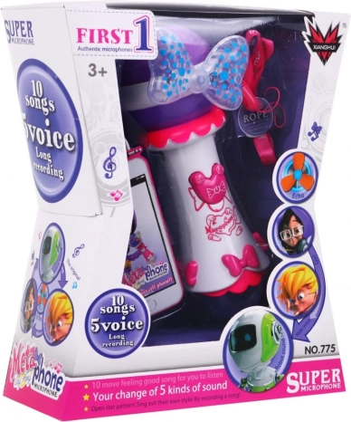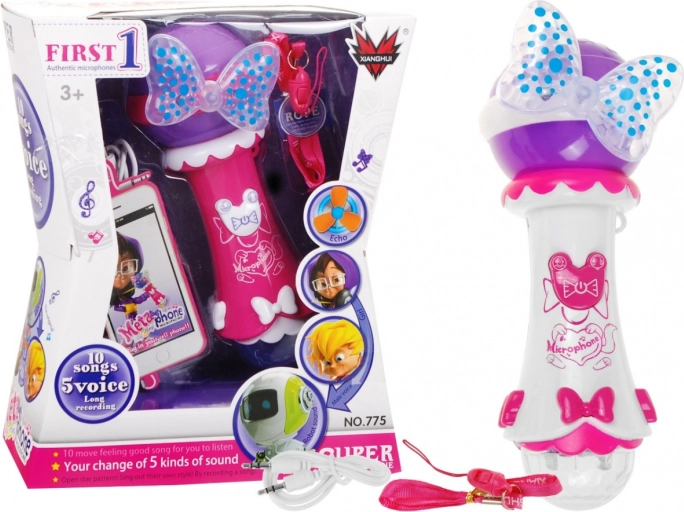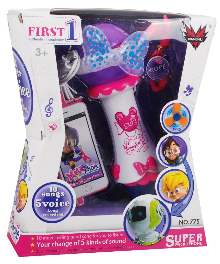Deze kindermicrofoon laat elk optreden stralen. Hij heeft een grote luidspreker voor helder geluid, twee opvallende LED-diodes (strik en grote bol) die kleurrijke lichteffecten uitstralen, en 10 ingebouwde melodieën voor direct plezier. Dankzij de functie opnemen en afspelen kunnen kinderen hun muzikale momenten bewaren.