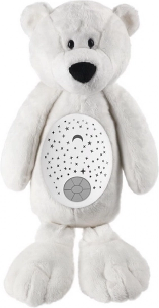 Deze interactieve beer creëert een kalmerende sfeer voor makkelijker inslapen. De projector in het buikje projecteert op plafond en muren een subtiele sterrenhemel in de kleuren rood, blauw, groen en paars, wat je kind visueel boeit en tegelijk tot rust brengt. De zachte pluche is veilig voor baby’s en nodigt uit om te knuffelen.