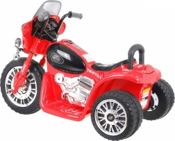Stijlvolle elektrische kinderchopper op accu met drie wielen voor stabiel rijden, LED-verlichting die tijdens het rijden brandt en leuke geluidseffecten (claxon, melodieën). Dankzij de 20 W motor, 6 V/4,5 Ah accu en het comfortabele zadel is hij ideaal voor de eerste rijervaringen van jonge rijders.