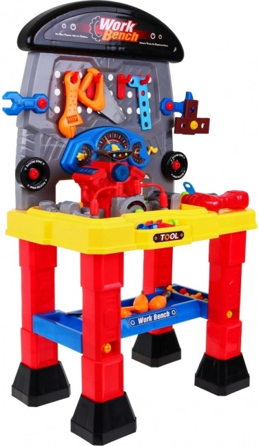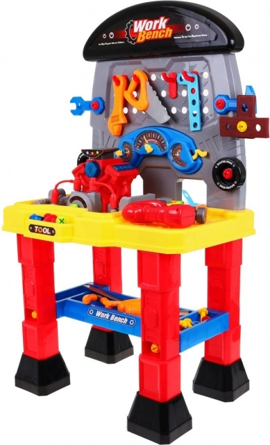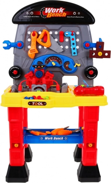 De kinderwerkplaats met motor biedt een breed scala aan gereedschappen die de handvaardigheid, verbeelding en creativiteit van je kinderen perfect ontwikkelen. De set bevat een door batterijen aangedreven motor met realistische geluiden en lichteffecten, die elke kleine enthousiasteling fascineert.