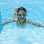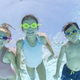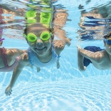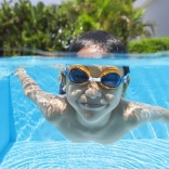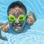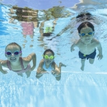 Groothoek, schokbestendige lenzen bieden uitstekend zicht onder water en betere oriëntatie tijdens het leren zwemmen.