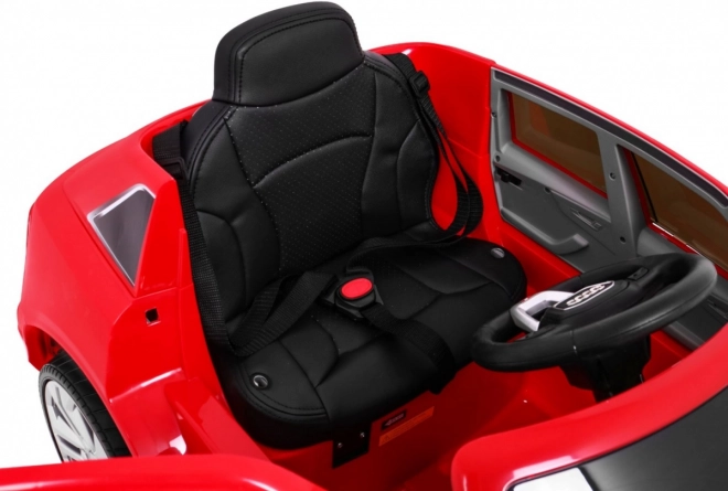 De luxe zwarte zitting van eco-leer biedt veiligheidsgordels voor maximale veiligheid. Het audiopaneel met MP3-speler, sleuf voor SD-kaarten en voorgeprogrammeerde melodieën zorgt voor entertainment onderweg.