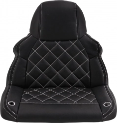 De zitting is gemaakt van zwart eco-leer en uitgerust met veiligheidsgordels. Te openen deuren en een gedetailleerd interieur zorgen voor een authentieke beleving. De auto is ontworpen om gemakkelijk te bedienen en veilig te zijn, met een maximale belasting van 30 kg en een bodemvrijheid van 8 cm.