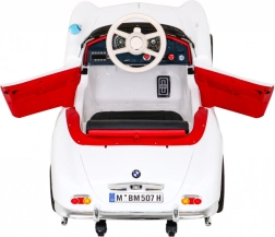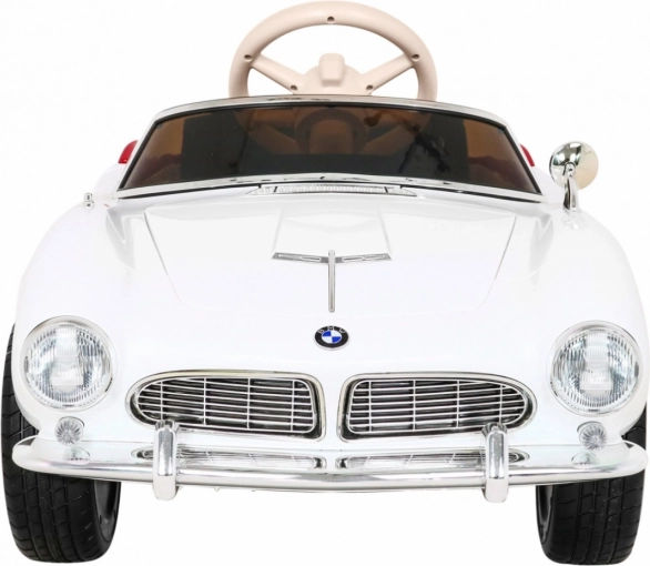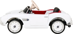 Stijlvolle roadster geïnspireerd op de klassieker BMW 507 die jonge bestuurders blij maakt met een realistische look, comfortabel rijgedrag en veilige bediening. Twee motoren 2×35 W, accu 12 V / 7 Ah, soepele start, 2,4 GHz afstandsbediening met drie snelheden en Stop-knop, zachte EVA-wielen met vering voor en achter, LED-verlichting en openende deuren – alles voor een leuke en veilige rit.