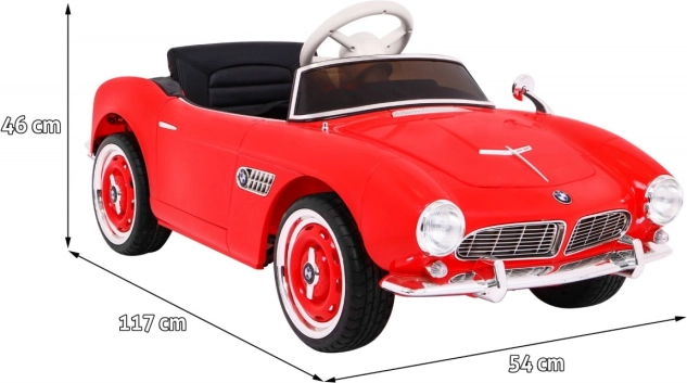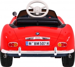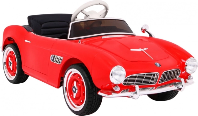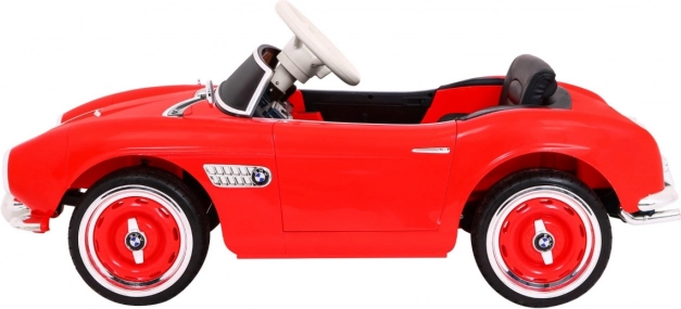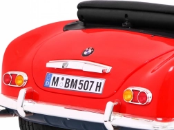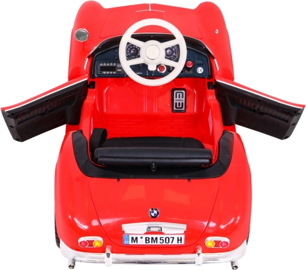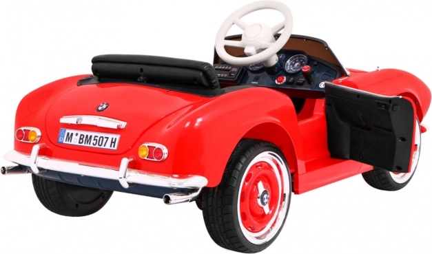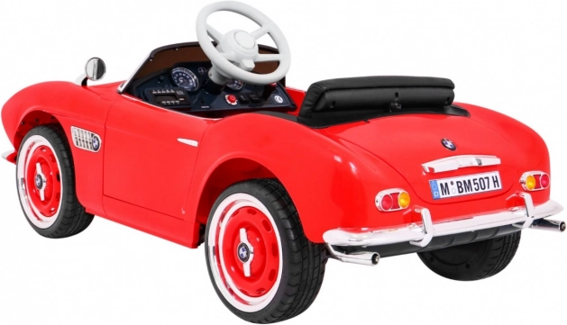 De replica van de legendarische BMW 507 roadster valt op door zijn retro lijnen, chromen details en realistische verlichting. De cockpit met een verlichte startknop en wit stuur stimuleert fantasie en rollenspel, terwijl openslaande deuren het instappen vergemakkelijken.