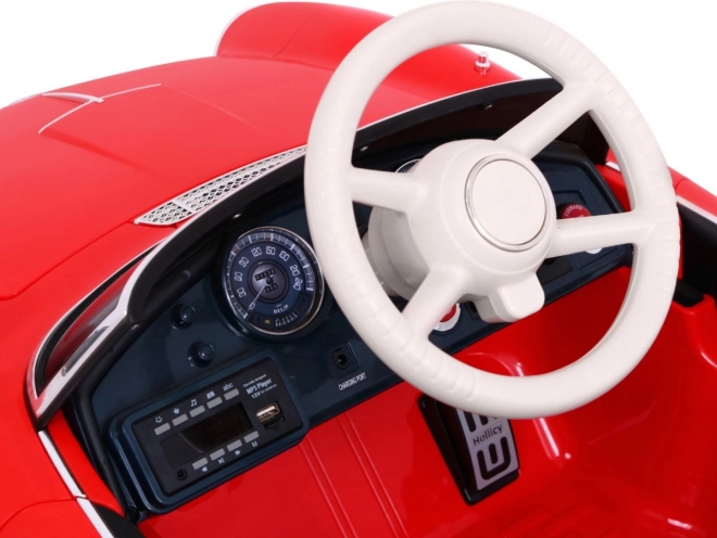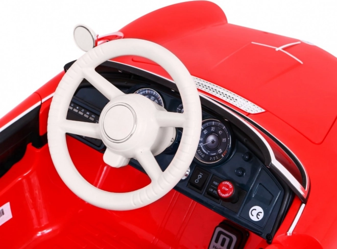 Getrouwe replica van de klassieke roadster met chromen details, realistische koplampen en een wit stuur. De aantrekkelijke rode uitvoering prikkelt de verbeelding en maakt rijden extra leuk.
