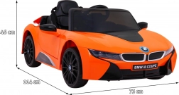 De elektrische kinderauto BMW i8 Coupé verrukt kinderen met de realistische look van de iconische sportwagen en met veiligheidsfuncties die ouders geruststellen. Twee 35 W-motoren zorgen voor voldoende vermogen, terwijl de soepele start en rijden vooruit/achteruit de bediening comfortabel en veilig maken. Zachte EVA-banden en een zitting van kunstleer zorgen voor comfort, ook tijdens langere ritten.