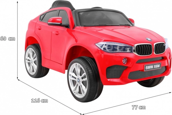 Gun kinderen een premium rijervaring in de gelicentieerde stijl van de BMW X6M. Twee motoren 2 × 45 W aangedreven door een 12V-systeem met twee accu’s 2 × 6 V/7 Ah zorgen voor een vloeiende start, twee snelheden en rijden vooruit en achteruit. Zachte EVA-wielen met een diameter van 26 cm en achterste schokdempers garanderen comfort, ook op minder vlakke ondergronden.
