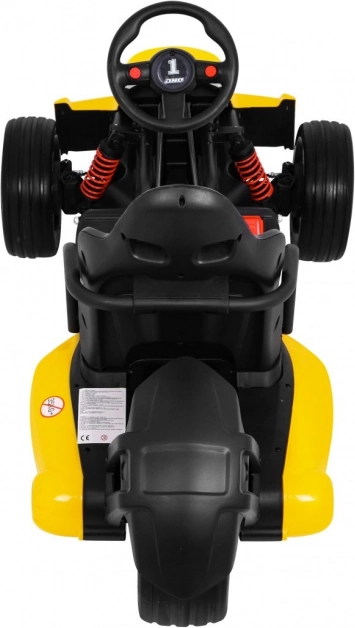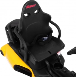 Voor comfort en gecontroleerd sturen zijn er een in hoogte verstelbaar stuur, een sportief gevormde stoel met metalen versterking en onafhankelijke voorvering aangevuld met achterdempers. Twee snelheden (Quick/Slow) laten de rijervaring aansluiten op het niveau van het kind en de claxon in het stuur zorgt voor een realistische beleving.