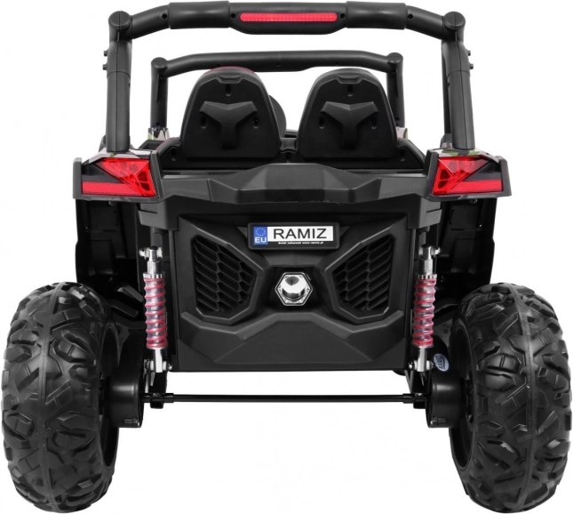 Ouders waarderen de betrouwbare 2,4 GHz afstandsbediening met drie snelheden en een veiligheidsknop STOP. Twee accu’s van 12 V / 7 Ah leveren genoeg energie voor langere ritten. Voor het comfort zorgt het geventileerde eco‑leren zitje met veiligheidsgordels en de complete uitrusting inclusief bagageruimte en vergrendelbare deuren.