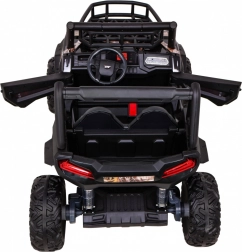 Robuuste elektrische kinderauto in UTV-stijl met krachtige aandrijving 2×200 W, een 24V 7Ah accu en zachte EVA wielen voor comfortabel rijden in het terrein. De 2,4 GHz afstandsbediening met veiligheidsknop Stop, soepele start, voor- en achter LED-verlichting, MP3/AUX/USB audiopaneel en een ruime achterkoffer maken deze off-road wagen ideaal voor avonturen buiten.