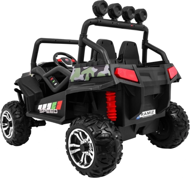 Met het gecamoufleerde uiterlijk en de duurzaamheid voor buitengebruik is de Grand Buggy 4x4 ideaal voor kleine avonturiers.
