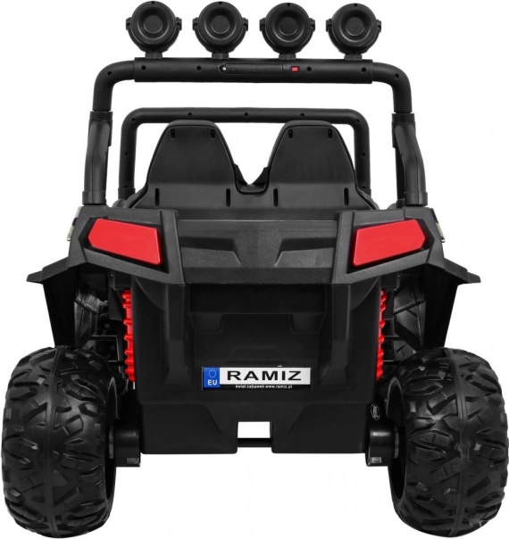 We brengen u de nieuwste versie van de kinder terreinwagen Grand Buggy 4x4, die een realistisch ontwerp combineert met moderne functies voor maximaal plezier. Deze wagen is uitgerust met vier krachtige motoren van elk 45W, twee 12V-batterijen en 4x4 aandrijving, om zelfs de zwaarste avonturen aan te kunnen.