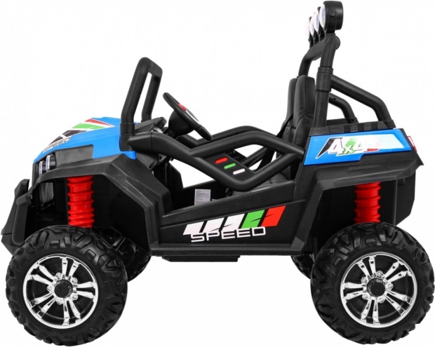 De elektrische kinderauto GRAND BUGGY 4x4 is ontworpen voor kleine racers die van avontuur houden. Dit elegante blauw-zwarte voertuig in off-road design biedt veiligheid en comfort met geventileerde stoelen van ecologische leer en verstelbare gordels.