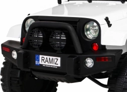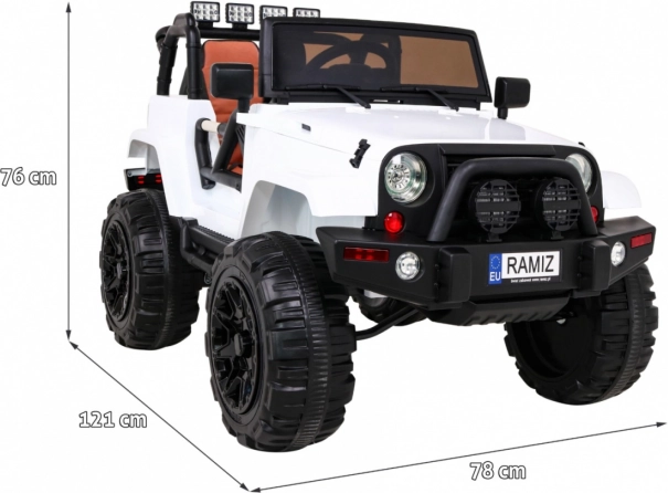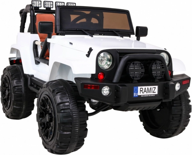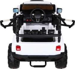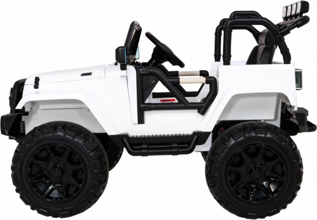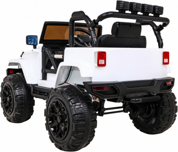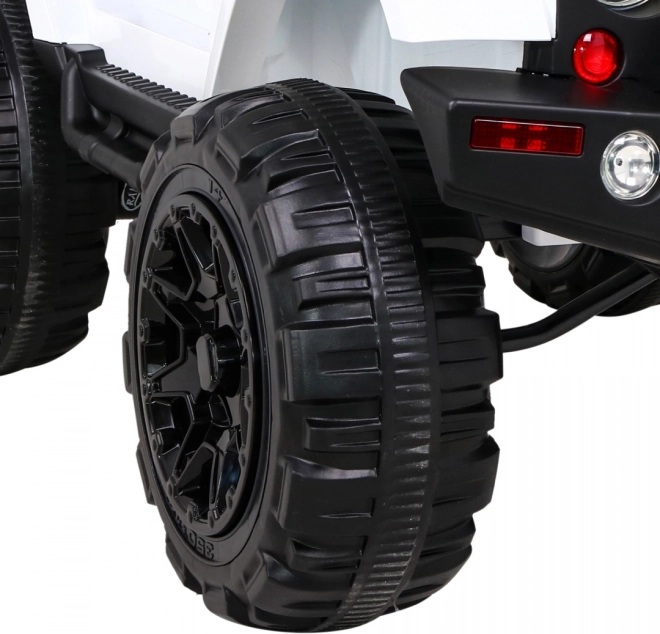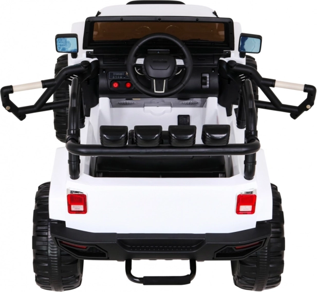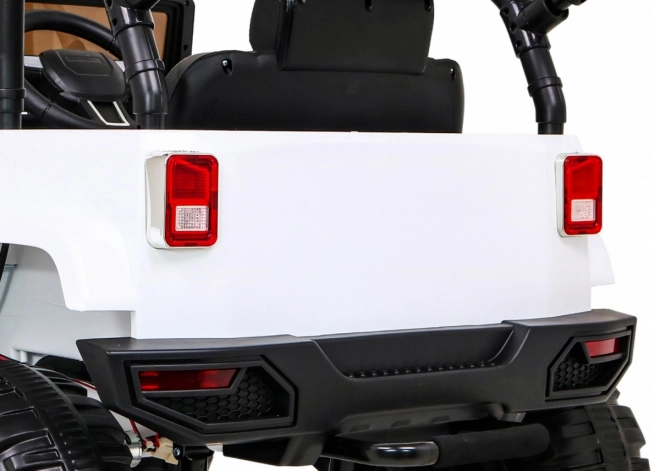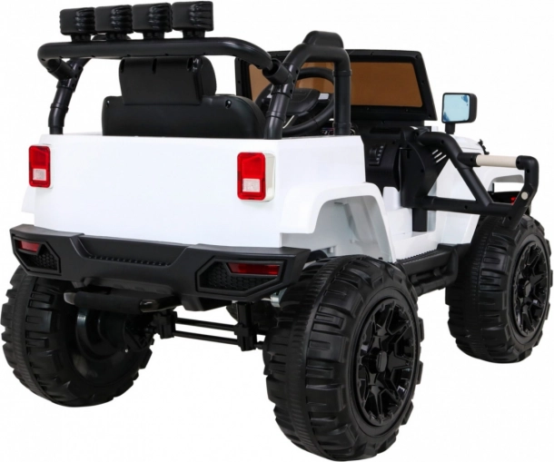 De elektrische kinderauto All Terrain Jeep in het wit biedt een realistische off-road rijervaring. Dankzij de krachtige motoren, kwaliteitsbanden en robuust ontwerp is het ideaal voor avonturen in de tuin en op asfalt. Een afstandsbediening stelt ouders in staat de auto onder controle te houden. LED-lichten en authentieke motorgeluiden zorgen voor de juiste sfeer tijdens het rijden.