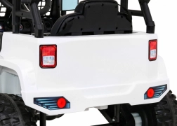 Robuuste elektrische kinderauto in offroad-stijl met 2x35 W aandrijving, 12 V 7 Ah accu, zachte EVA-wielen en geleidelijke start voor veilig rijden. Ouders waarderen de 2,4 GHz afstandsbediening met nood-STOP, kinderen de openende deuren, LED-koplampen en audiopaneel met USB/AUX.