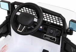 Ouderlijk toezicht wordt gegarandeerd door de 2,4 GHz afstandsbediening met drie snelheden en STOP-knop. Kleine bestuurders genieten van de LED-verlichting, het realistische stuur met claxon en melodieën en het audiopaneel met USB en AUX voor favoriete liedjes.