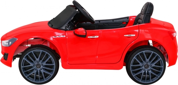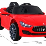 De stijlvolle elektrische kinderauto MASERATI Ghibli biedt aandrijving 2×12 V, soepele start, zachte EVA-banden, 2,4 GHz afstandsbediening en LED-verlichting. Comfort wordt verzekerd door een zitje van eco-leer met gordels, openende deuren met vergrendeling en een uitgebreide audiopaneel met MP3/USB/SD/AUX.