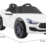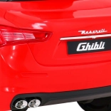 De gelicentieerde MASERATI Ghibli kinderauto verrast met realistische details en veilig rijgedrag. Twee krachtige SF390-C 12 V-motoren (tot 16000 t/min) in combinatie met een soepele start en achterdempers bieden comfort, ook op oneffenheden. Zachte EVA-banden zorgen voor stille werking en uitstekende grip.