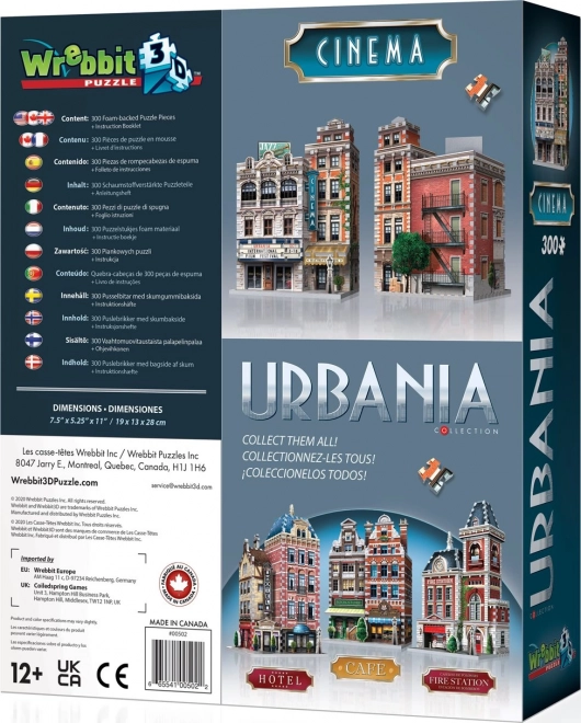 Bouw een stijlvolle bioscoop en breid je stadje uit met de URBANIA-collectie. De WREBBIT 3D-puzzel combineert ontspannend bouwen met een realistisch resultaat dat op een plank of bureau prachtig tot zijn recht komt. Dankzij de doordachte vormgeving en de dikte van de stukjes blijft het model stevig in elkaar zitten zonder lijm.