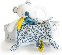 Deze prachtige cadeauset bevat de pluche koala Yoca, de ideale metgezel voor een baby vanaf de geboorte. Biedt een gevoel van veiligheid en comfort dankzij het fluweelzachte materiaal. De rammelaar met kraaltjes in de ring zorgt voor stimulatie en plezier voor de allerkleinsten.
