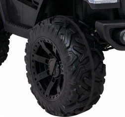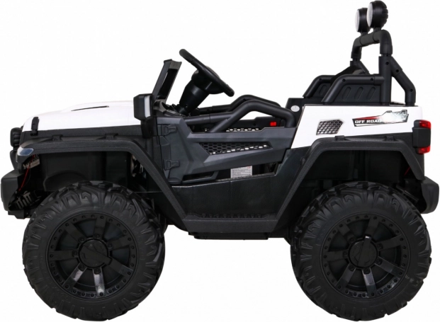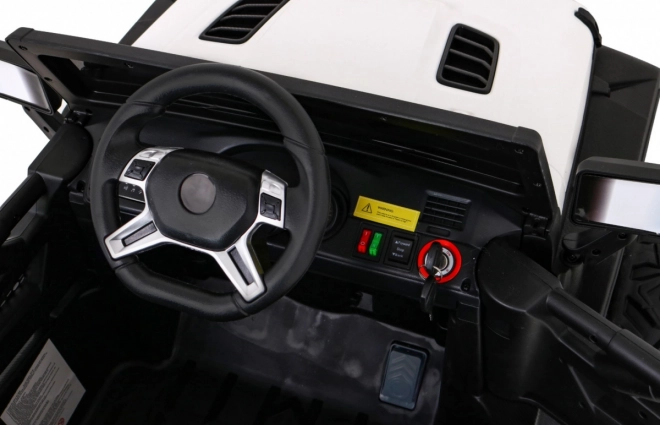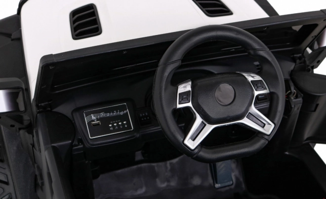 LED-verlichting voor en achter en een multimediapaneel met MP3/USB/SD en Bluetooth. Geluiden op het stuur en starten met een sleutel zorgen voor een realistische rijbeleving.