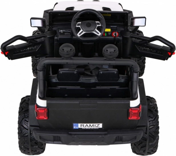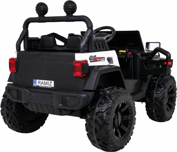 Deze terreinwagen van RAMIZ is gemaakt voor avontuur. De schakelbare 2WD/4WD past de rit aan de omstandigheden aan, terwijl vier 4×35 W motoren, soepele start en twee rijstanden zorgen voor vloeiende en zelfverzekerde bediening. Grote EVA-schuimwielen 35 × 15 cm in combinatie met vering voor en achter bieden uitstekende tractie en comfort op stoep en in de tuin. Praktische LED-verlichting voor en achter voegt stijl toe en verhoogt de veiligheid.