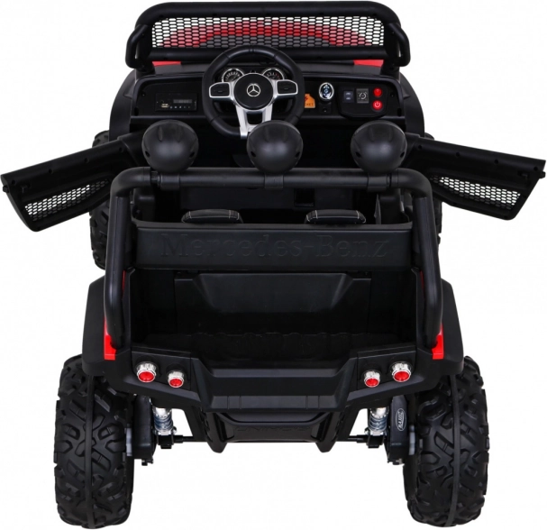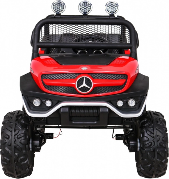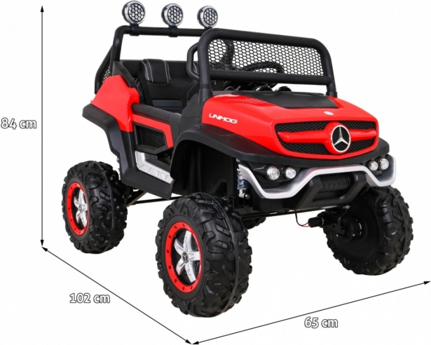 De robuuste kinderauto, geïnspireerd op de legendarische offroader Mercedes‑Benz UNIMOG, bedwingt oneffen terrein dankzij de grote EVA-banden, de hoge bodemvrijheid en de verstelbare vering. De optionele aandrijving 4x4 of 4x2 laat je het vermogen afstemmen op de ondergrond, terwijl de zachte start en de keuze vooruit/achteruit voor comfortabel rijden zorgen.