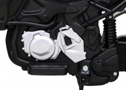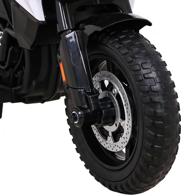 De krachtige configuratie van 2×35 W op een 12V/7Ah accu is ideaal voor dagelijkse ritjes. Kinderen zullen genieten van lichteffecten, het audiopaneel met voorgeprogrammeerde melodieën en de mogelijkheid om USB en AUX aan te sluiten. Voorste LED-verlichting en de realistische afwerking van stuur, spiegels en uitlaat benadrukken het uiterlijk van een echte avonturenmachine.