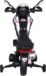 Een stijlvolle elektrische kindermotor geïnspireerd op de BMW F850 GS biedt een realistische look, veilige zijwieltjes, een comfortabele soft start en stille EVA-wielen. Dankzij 2 motoren van 35 W, voorste LED-koplampen en een audiopaneel met USB/AUX genieten kinderen van een leuke en veilige rit, zowel binnen als buiten.