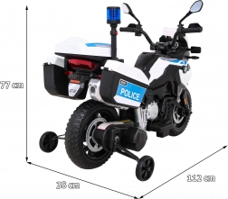 Stap in voor een rit vol actie met de elektrische kindermotor BMW F 850 GS POLICE op 12 V – realistische look, stille EVA-banden, LED-verlichting, sirenes, hulpszwenkwielen voor stabiliteit en 2 zijkoffers voor uitrusting. Twee 35 W motoren zorgen voor vlotte beweging, terwijl de soepele start comfort en veiligheid biedt, ook voor de allerkleinsten.
