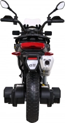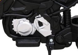 De motor is uitgerust met voorste LED-lampen, een comfortabel zadel en zijwieltjes voor betere balans. Het geïntegreerde audiopaneel met USB en AUX speelt favoriete melodieën en verhaaltjes af. Eenvoudige bediening via de startknop en twee vooruitstanden maakt de eerste stappen in de motorwereld gemakkelijk.