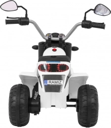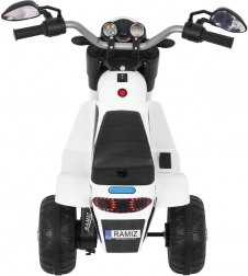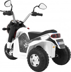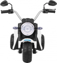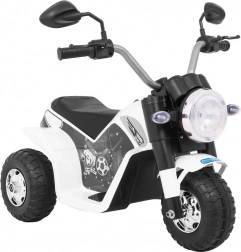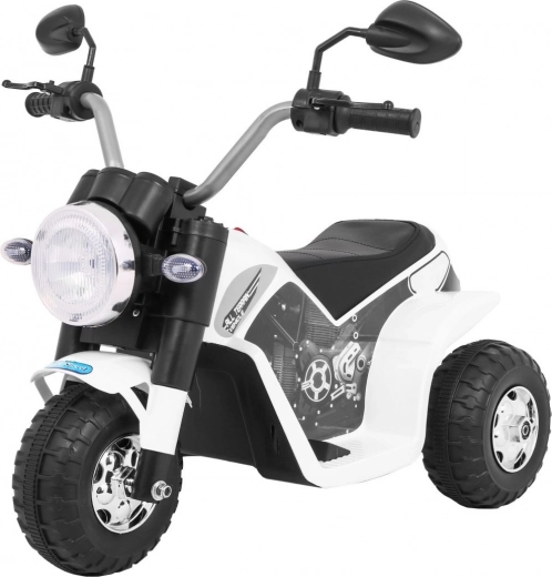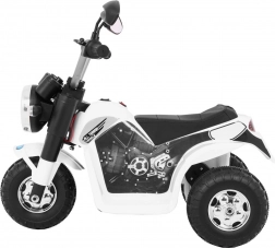 De elektrische kindermotor MiniBike in elegant wit biedt kinderen veilig speelplezier en hun eerste rijervaringen. Dankzij de drie wielen is hij stabiel en beschikt hij over voorste LED‑koplampen, motorgeluid bij het starten en melodieën op het stuur. Aangedreven door een RS380‑motor 6 V met een accu 6 V / 4,5 Ah, terwijl het zadel van zwarte eco‑leer voor comfort zorgt.