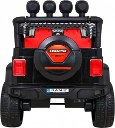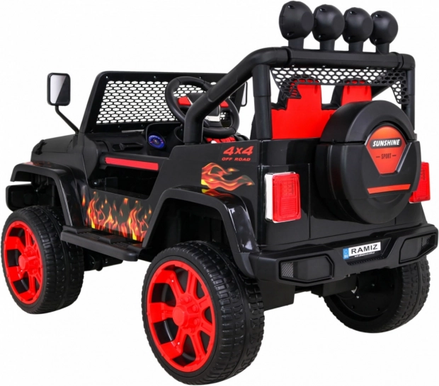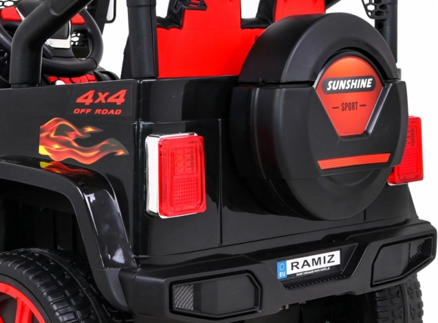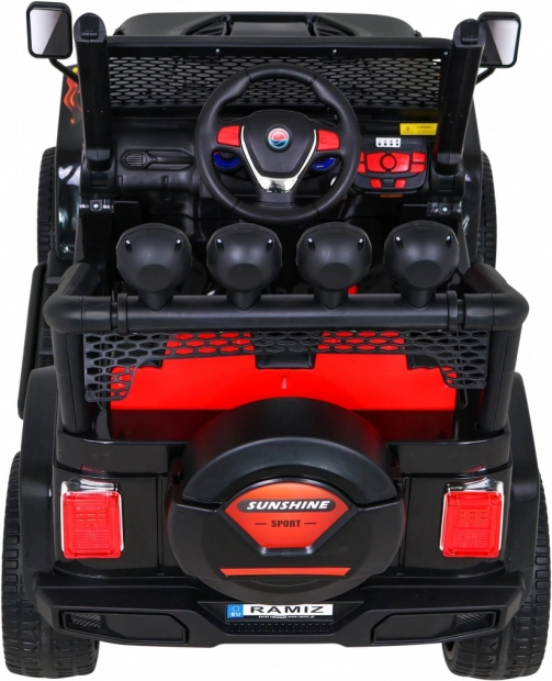 De auto is uitgerust met veiligheidsgordels en een afstandsbediening, waarmee ouders de snelheid kunnen regelen en de auto indien nodig kunnen stoppen.