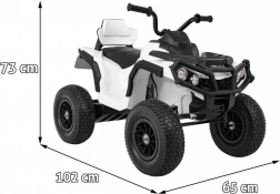 De quad is uitgerust met opgepompte wielen met een diameter van 31 cm en een breedte van 10 cm, en versterkte veren voor en achter, wat uitstekende stabiliteit en rijcomfort biedt.