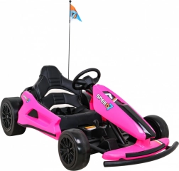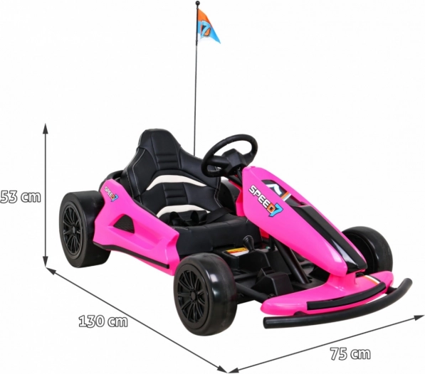 De roze elektrische kinderkart SPEED 7 DRIFT KING biedt een adrenalinerit met een driftfunctie, een krachtige aandrijving van 2 × 150 W en een 24 V 7 Ah accu. Dankzij de sportieve stoel van eco-leer, twee snelheidsstanden en de combinatie van EVA voorwielen en kunststof achterwielen is hij ideaal voor een leuke en veilige rit voor kinderen.