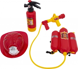 In de set zitten een helm, een waterbrandblusser en een rugzak met spuit en reservoirs – ideaal voor creatieve reddingsmissies.