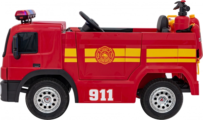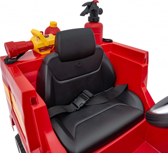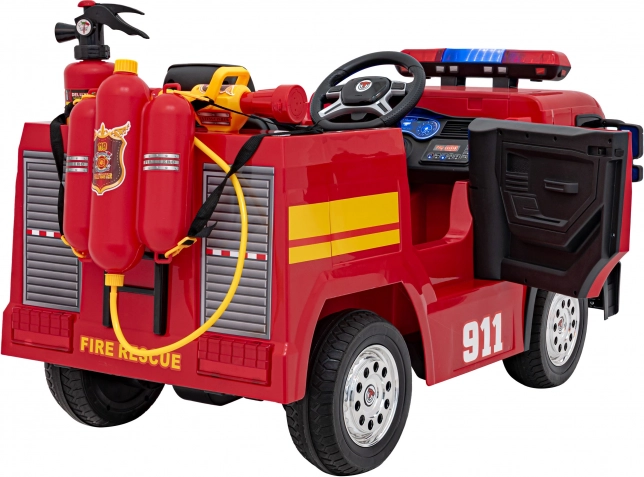 De elektrische brandweerwagen voor kinderen met 12V accu is het perfecte voertuig voor actievolle reddingsspellen. Twee krachtige RS550-motoren en EVA-schuimbanden zorgen voor een soepele en comfortabele rit, terwijl de 2,4 GHz afstandsbediening ouders volledige controle geeft dankzij de nood-Stopknop en keuze uit 3 snelheden. Realistische details zoals LED-koplampen en schakelbare zwaailichten, motorstartgeluid en een sirene op het paneel versterken de beleving.