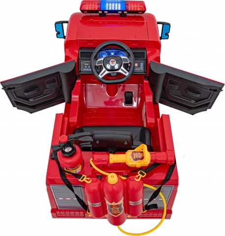 Vervul de droom van kleine brandweerlieden met een realistische 12V accu-rijauto. Voorzien van 2 krachtige motoren, 2,4 GHz afstandsbediening met nood-Stopknop, LED-lichteffecten en openslaande deuren. Voor nog meer plezier zijn er een sirene, melodie-afspeelfunctie en een uitgebreide brandweeruitrusting inclusief waterstraalpistool en helm.