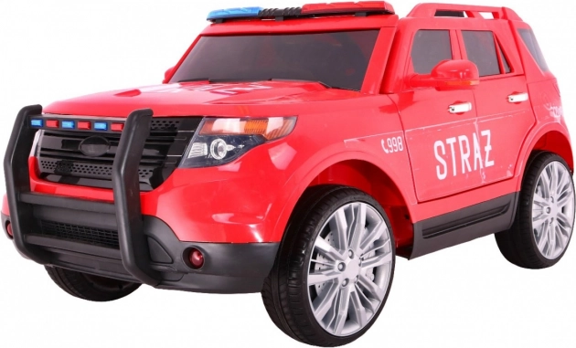 Robuuste elektrische kinderauto in de stijl van een brandweer-SUV biedt realistische ritten en veilig plezier. Twee krachtige motoren 2×45 W, een 12 V/7 Ah accu en ouderlijke afstandsbediening zorgen voor een soepele start, twee snelheden en rijden vooruit/achteruit. Voor comfort zorgt een geventileerde zitting van eco-leer, voor grip stille EVA-banden en voor effect LED-verlichting met knipperende zwaailichten, megafoon en sirenes. Rijke audio-uitrusting (FM-radio, MP3, SD, AUX, USB) en te openen deuren versterken de authentieke beleving.