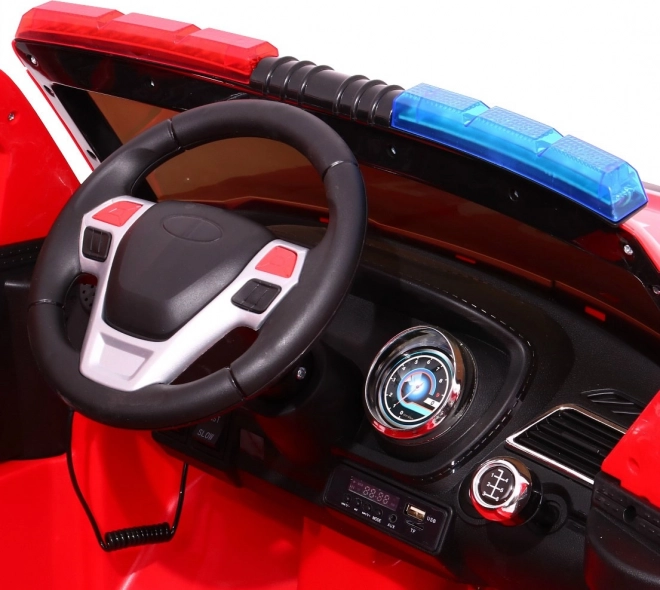 - Verlichting en effecten: LED voor en achter, knipperende zwaailichten, megafoon + sirenes