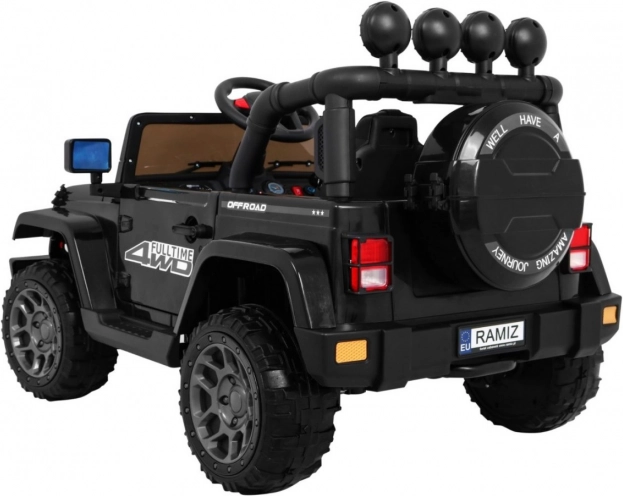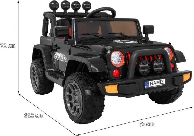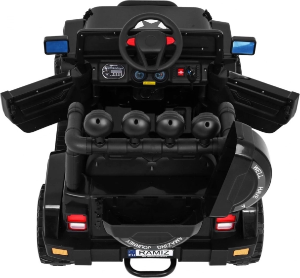 Veiligheid staat voorop: 5-puntsgordels, een schokvrije, soepele start en de 2,4 GHz ouderafstandsbediening met noodknop STOP geven controle in elke situatie. Voor een realistische ervaring zorgen werkende LED-lampen, te openen deuren, een ruime zitting en een achtercompartiment in het “reserve” wiel voor kleine spulletjes.