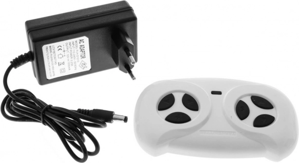 - Bediening: rijden vooruit/achteruit, 3 snelheden via de afstandsbediening, aparte lichtschakelaar.