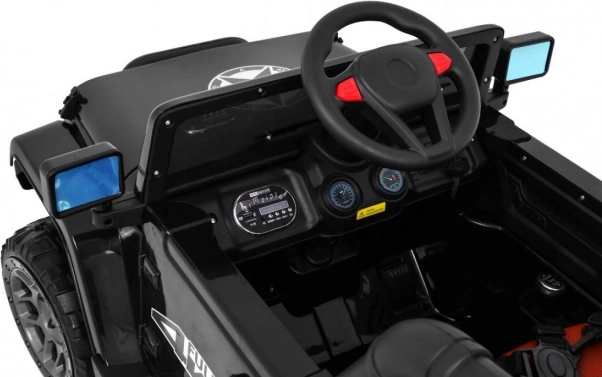 Robuuste elektrische kinderauto met 4x4-aandrijving, zachte EVA-wielen en 2,4 GHz afstandsbediening voor ouders. Biedt soepele start, voor- en achterLED-verlichting, te openen deuren met vergrendeling en een uitgebreid audiopaneel (MP3/USB/SD/AUX). Voor de veiligheid zorgen 5-puntsgordels en vering op zowel de voor- als achteras.