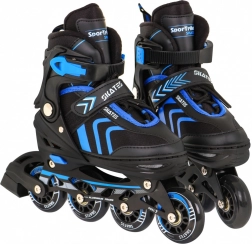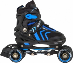 Universele set voor kleine skaters met 4-in-1: inline skates, rolschaatsen en ijsschaatsen met snelle wissel van onderstellen. Dankzij de vijfstaps maatverstelling 29–33, comfortabele EVA-schuimvoering met Velvet-materiaal en de stevige halfharde constructie biedt de set comfort, stabiliteit en veiligheid. Het aluminium frame, ABEC-7 lagers en PU-wielen 64 mm 85A zorgen voor een soepele en zekere rit; remmen gebeurt met de rem op de rechterskate.