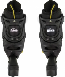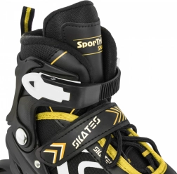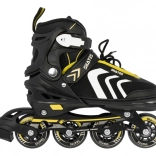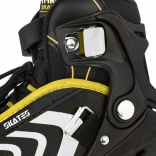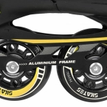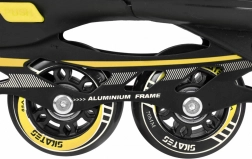 De schoen is voorzien van effectieve ventilatie, een semipermeabel membraan en een voorgevormde inlegzool met zacht EVA‑schuim afgewerkt met fluweelzacht Velvet‑materiaal. Het driedubbele sluitsysteem (vetering, klittenbandriem, gesp met vergrendeling) houdt de voet stabiel. Het aluminium frame met PU wielen 70×24 mm, hardheid 85A en ABEC‑7 lagers biedt een vloeiende en snelle rit; de rechter skate is uitgerust met een rem.